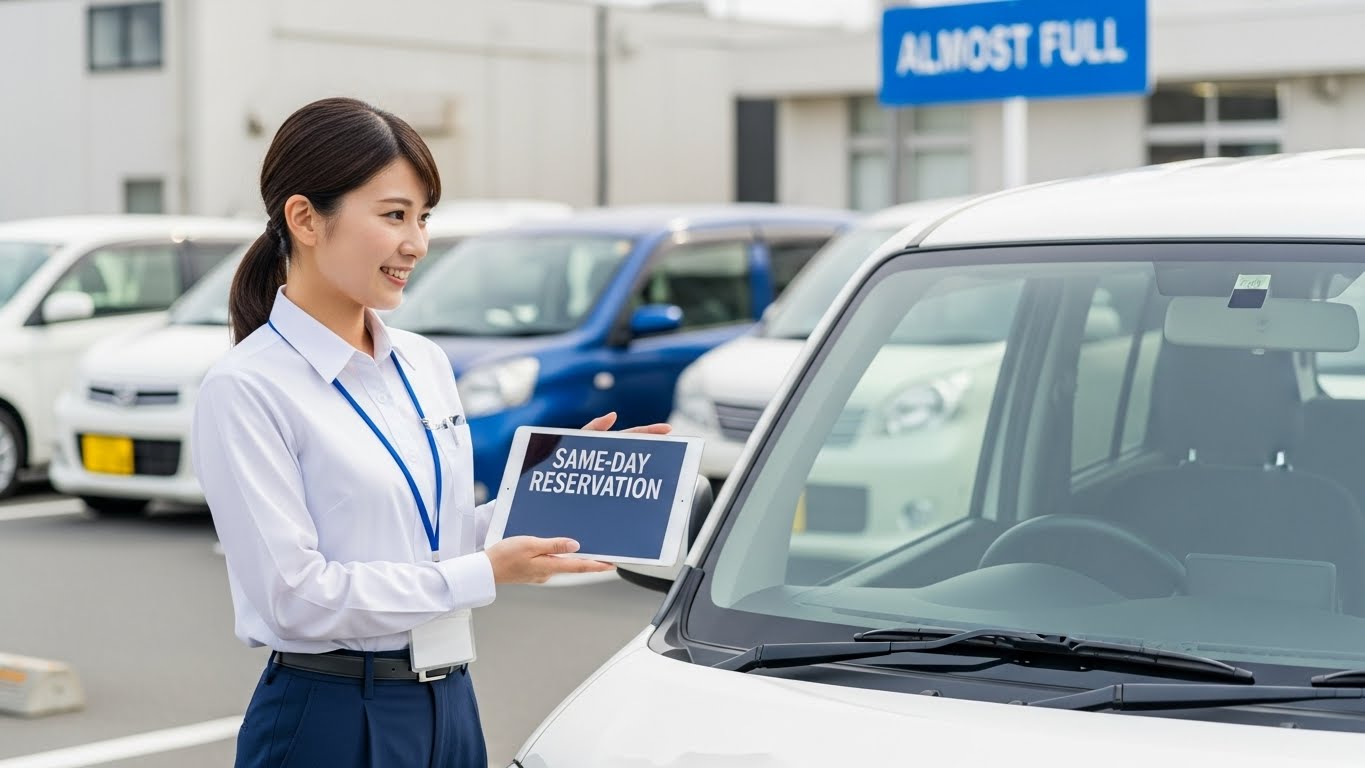 であることが多く、取り合いになりやすい在庫です。注意点は、「当日予約OK=必ず借りられる」ではないこと、特に連休・観光地・朝イチの便が集中する時間帯は”当日=ほぼ無理”に近い日もあるという現実です。